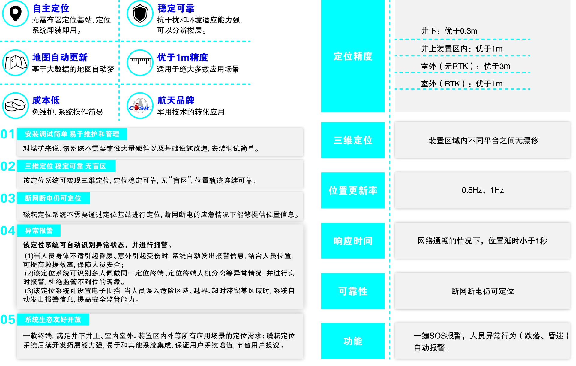 產(chǎn)品簡(jiǎn)介:選煤廠主廠房、篩分破碎車間等建筑內(nèi)的大型設(shè)備立體空間結(jié)構(gòu)復(fù)雜、遮擋嚴(yán)重,眾多電氣設(shè)備特別是變頻設(shè)備存在大量諧波及電磁干擾,現(xiàn)有定位技術(shù)不適用于選煤廠的復(fù)雜環(huán)境。針對(duì)選煤廠的復(fù)雜環(huán)境特點(diǎn),我公司首次研發(fā)了基于空間固有磁場(chǎng)特征的“磁耘”多源融合智能精確定位系統(tǒng)。該系統(tǒng)通過(guò)無(wú)源被動(dòng)的自主導(dǎo)航定位,為選煤廠復(fù)雜環(huán)境提供了一種穩(wěn)定、高效且抗干擾的全新人員精準(zhǔn)定位解決方案。“磁耘”多源融合定位系統(tǒng)是基于地磁技術(shù)的人員定位系統(tǒng),其基本原理是利用不同位置的固有磁場(chǎng)差異來(lái)確定人員位置信息,同時(shí)還融合了慣導(dǎo)、藍(lán)牙、北斗等定位技術(shù),實(shí)現(xiàn)了室內(nèi)外一體化定位。